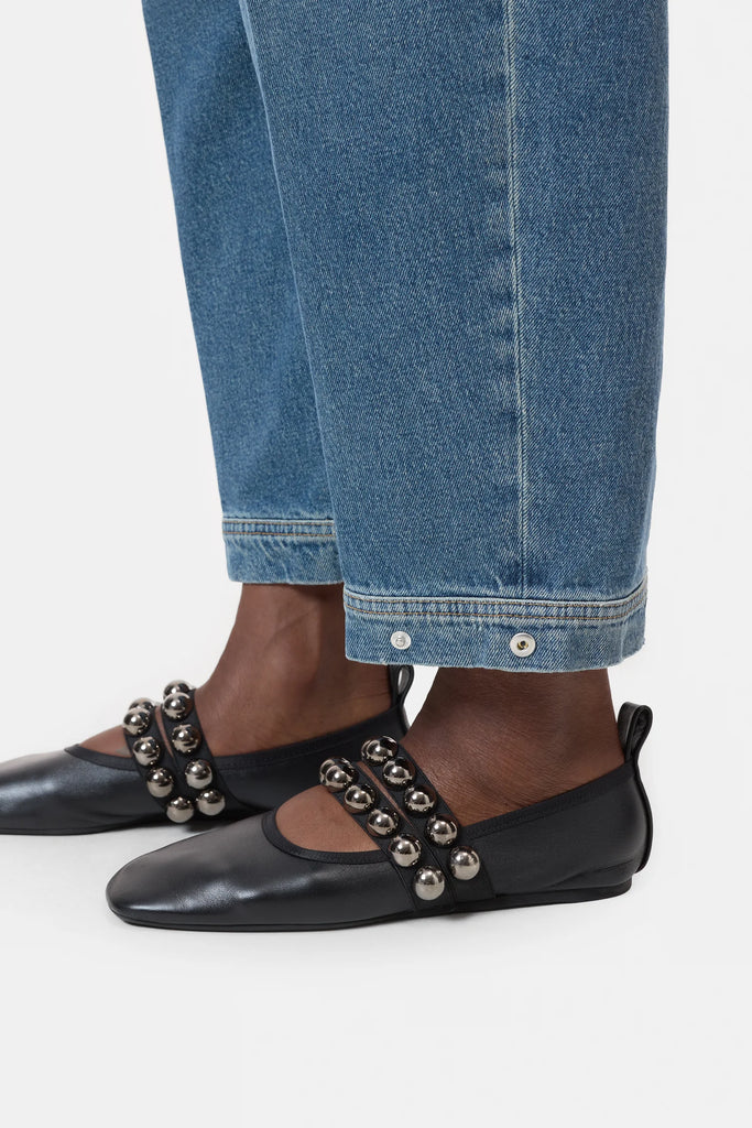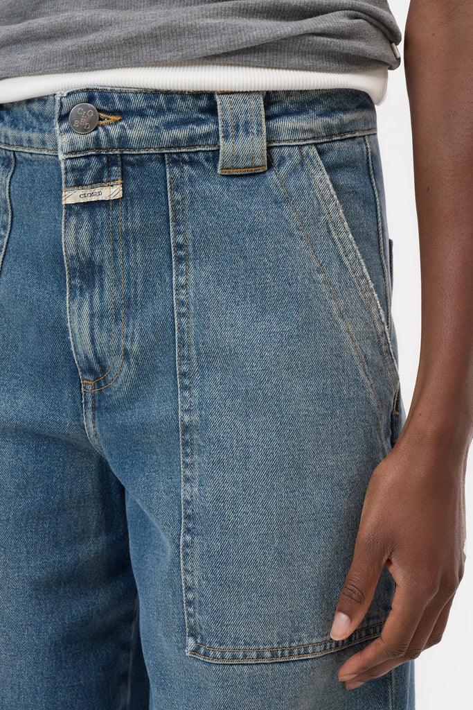 Blue x FrizzanteThe comfort stretch denim (12 oz.) used offers slight elasticity and shows a harmonious vintage wash with subtle brightening and whisker effects. Our Rhannon barrel-fit jeans have a mid-rise waist and cropped leg length. Striking details are the wide belt loops, the generous worker pockets on the front and back and the hem width adjustable with metal buttons. Made in Italy.