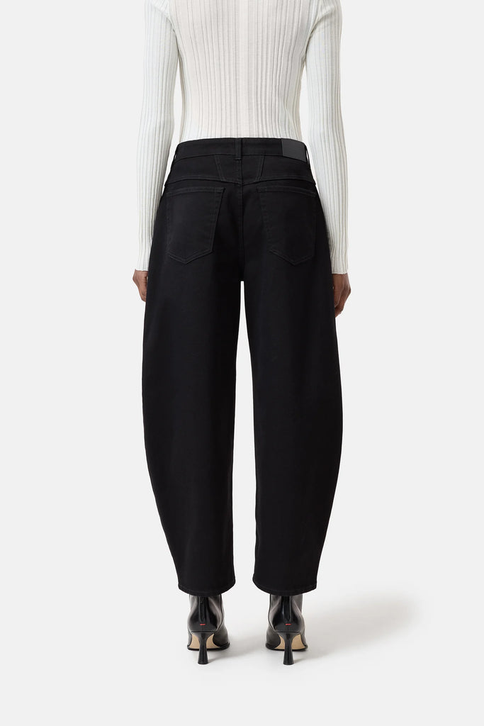 Our Jazzie jeans have a relaxed barrel fit with a mid-rise waist and cropped leg. It is made of soft Candiani denim, which has been treated with a special dyeing technology. This ensures that the deep black tone is retained for a long time. A little elastane provides extra comfort