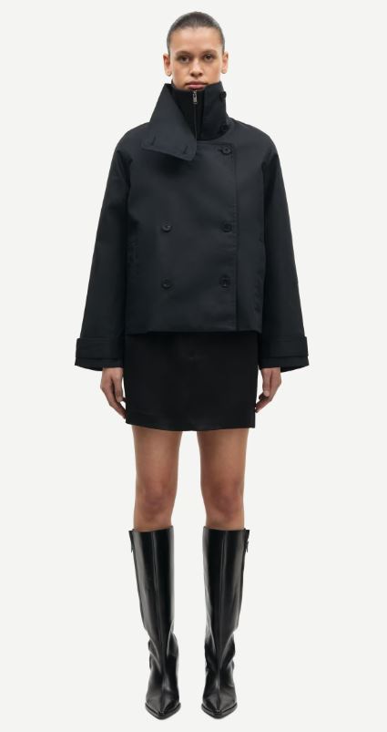 2-in-1 jacket, consisting of a short trench coat and padded jacket with a regular fit and dropped shoulders. Double-breasted button closure on the front of the outer jacket and zipper closure on the front of the inner jacket. Adjustable cuffs with buttoned straps on the outer jacket. High neck on both jackets. Welt pockets on the front of both jackets. Inner jacket is padded. Main material of the outer jacket made from 100% cotton. Main material of the inner jacket made from mini ripstop.