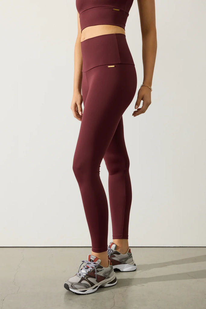 Streef naar briljante prestaties met de nieuwste versie van Deblon’s Classic High Waist Leggings in bordeaux.
