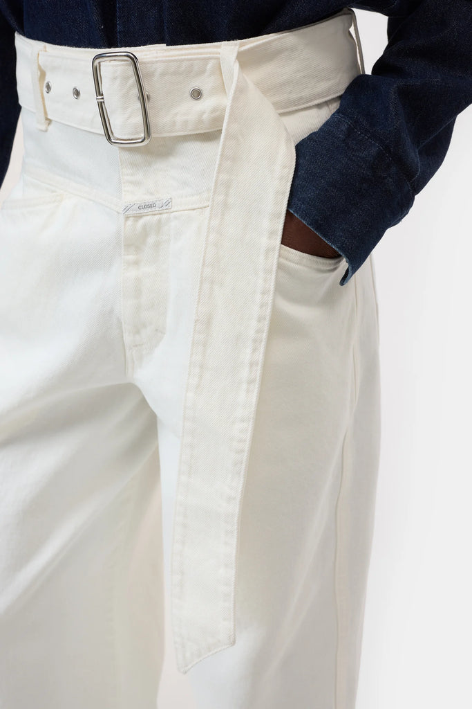 Made from authentic milky white denim without stretch, our archive-inspired Deni-X baggy jeans have a low crotch, a wide belt with a silver-tone buckle and an extended fly with zipper. Made in Italy with BCI cotton.
