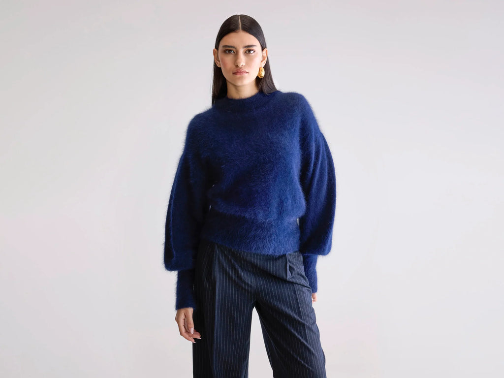 Blue x FrizzanteZachte gebreide trui met ronde hals en lange mouwen, in een donker blauwe angoramix.