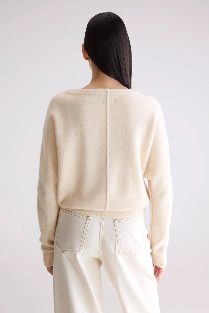 Blue x FrizzanteKlassieke, relaxte gebroken witte trui van wolmix met een zichtbaar naaddetail aan de voor- en achterkant.