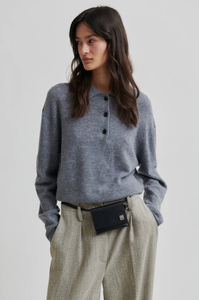The pullover is made in an ultra-soft wool-cashmere blend. Featuring a polo collar and button fastening at the front. Dropped shoulders with long sleeves. Ribbed collar, cuffs and bottom hem. Regular fit.