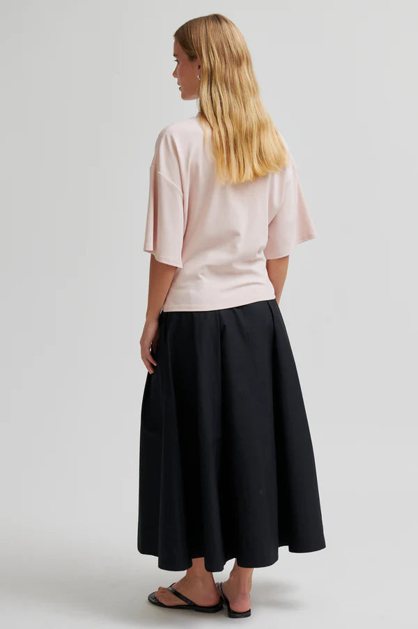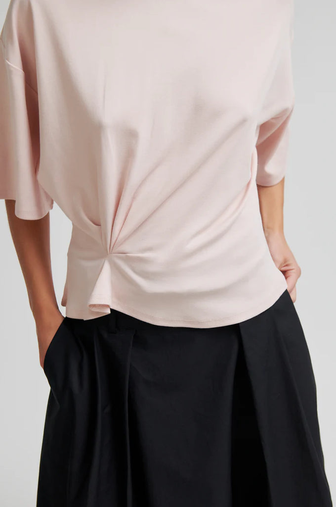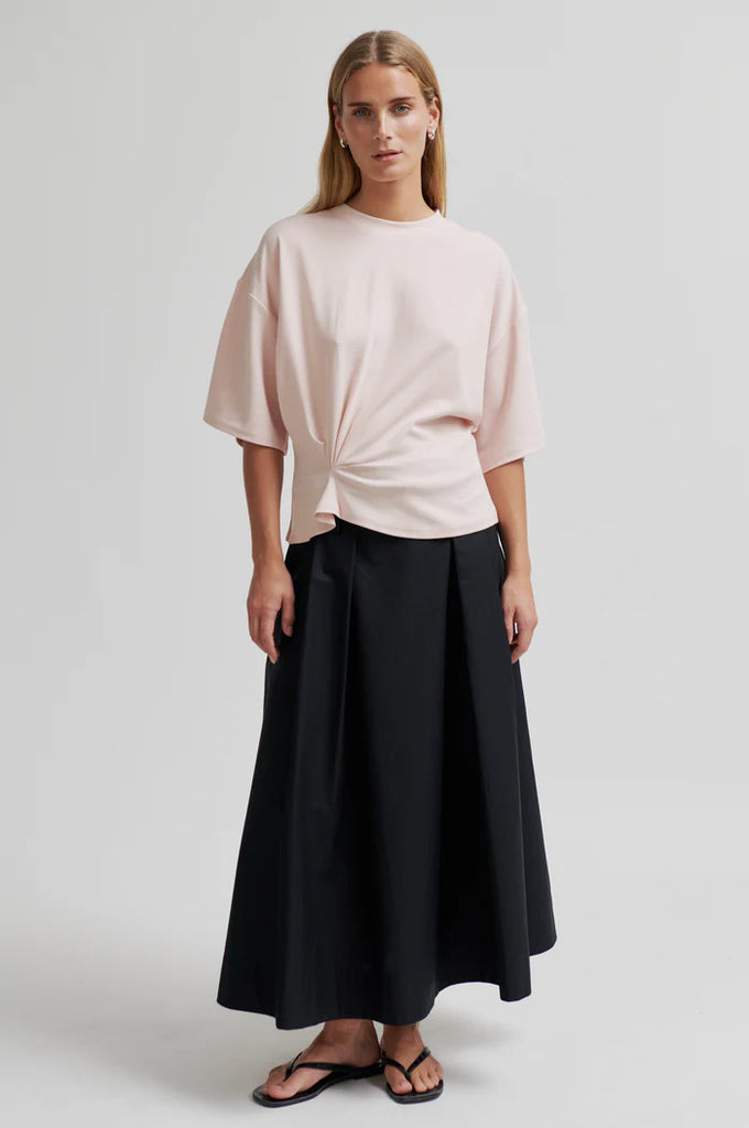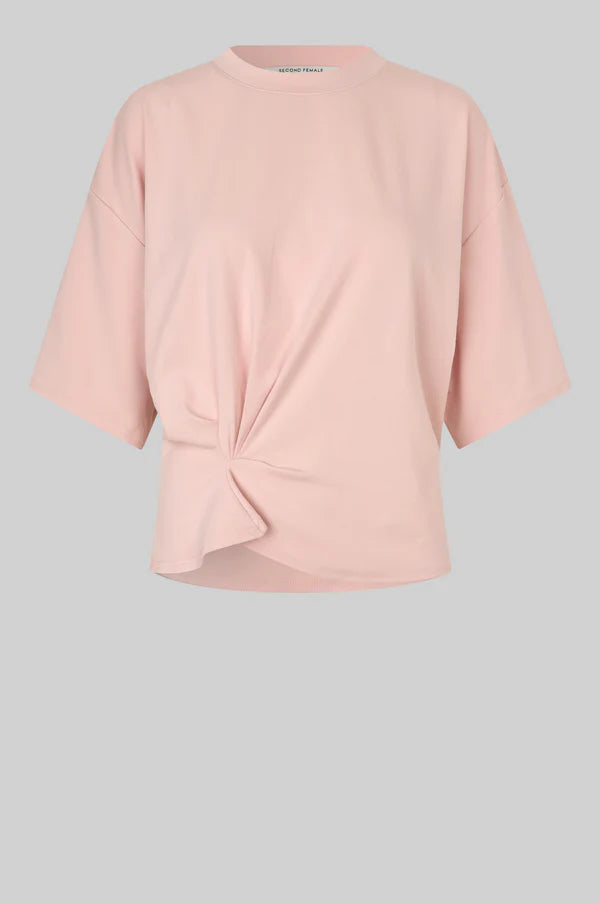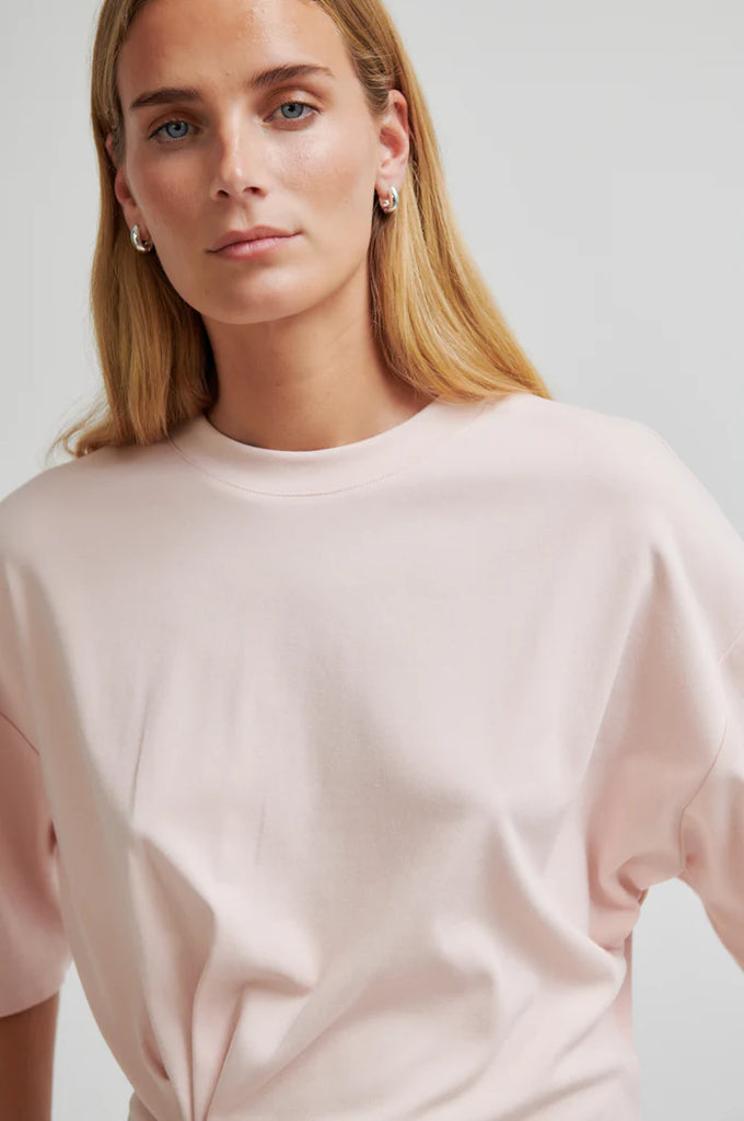 Blue x FrizzanteSecond Female gathered short-sleeved tee. The t-shirt is made in a soft, stretchy lyocell-cotton blend. Featuring a round neckline and dropped shoulders. Gathered detail at front for draped effect. Relaxed fit at top with more fitted waist.