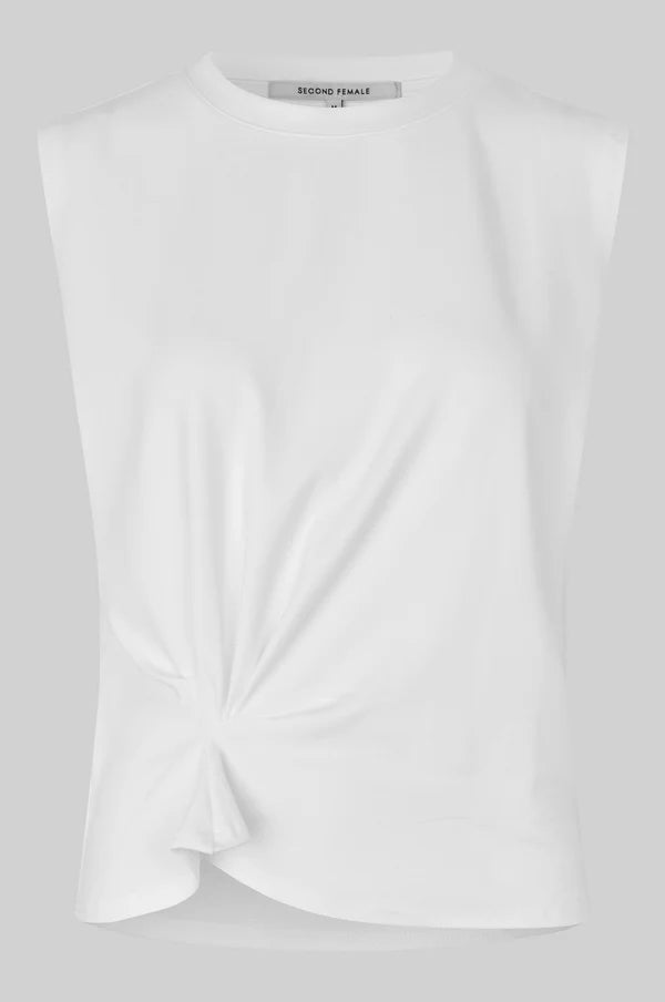 Blue x FrizzanteSecond Female gathered sleeveless tee. The t-shirt is made in a soft, stretchy lyocell-cotton blend. Featuring a round neckline and deep cut armholes. Gathered detail at front that creates draped effect. Relaxed fit at top with more fitted waist.